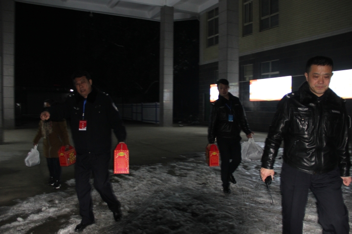 民警晚上值班饿不饿?冰冻天气保暖行不行?带着所党委对基层民警的关心,晚上10时许,所长江志晖、值班所领导聂仁贵带领机关民警依次前往一大队、三大队、五大队、八大队、六大队和市特殊人群涉毒人员收治中心看望慰问节日期间坚守岗位的值班民警,向他们嘘寒问暖,给他们送去时鲜水果和坚果食品,嘱咐大家一定要有尊严的执法,有价值的工作,有品味的生活,尽职尽责保场所安全。