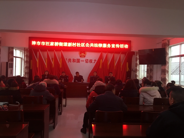 1月9日上午9点,津市市司法局在汪家桥街道新村社区开展公共法律服务宣传活动,街道党工委书记,综治办主任,司法所所长及助理员,公共法律服务中心工作人员,社区干部及辖区部分居民参与活动。