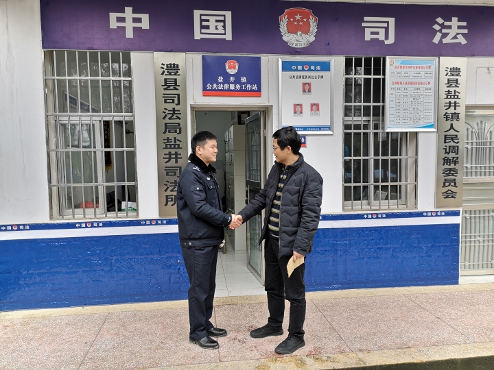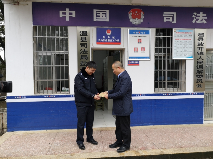 针对1月7日肖俊冰水中勇救被困父女两人的英勇事迹,10日上午,省厅基层处长周桥、市局副局长石林代表省厅和市局前往澧县盐井司法所慰问肖俊,并送来慰问金。县局局长刘承建、副局长刘延岸等陪同。