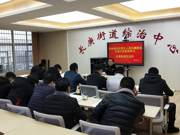 为深入推进扫黑除恶专项斗争,扩大专项行动在特殊人群中的影响力,切实维护社会和谐稳定。2019年2月26日上午,常德市武陵区长庚街道司法所组织开展了“湖南省社区矫正扫黑除恶专项斗争宣传学习”活动。