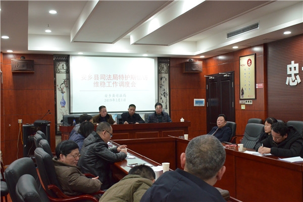 全国两会将于3月3日起相继在北京召开。为营造和谐稳定的社会环境,确保全国两会顺利召开,安乡县司法局党组高度重视,3月1日上午,县司法局召开了特护期间信访维稳调度会,精心部署,全力做好特护期间信访维稳工作。