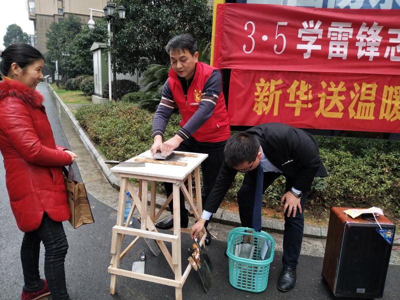 阴雨三月,窄暖还寒。早晨8点,20名余名志愿者冒着寒风细雨、身着红色马甲准时来到新邦一品小区拉横幅、摆设备,在沙河社区负责人和物业公司经理陈红军的带领下,有的为业主理发、磨刀,有的为业主测血压、健康咨询,有的为业主宣传禁毒知识,各尽所能的为小区业主提供贴心服务,小区里洋溢着暖暖的春意和浓浓的邻里情。