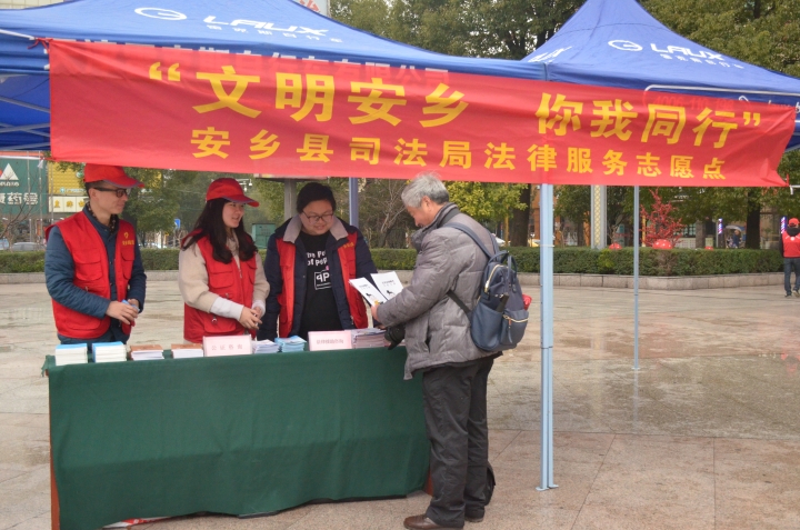 启动仪式结束后,安乡县司法局法治宣传志愿者向过往群众及前来参加活动的志愿者发放市民普法读本、法律小常识、公证及法律援助宣传手册,通过法律咨询、法律宣讲等形式,为过往群众解疑答惑、普及法律知识,进一步提高了全县人民法律意识。