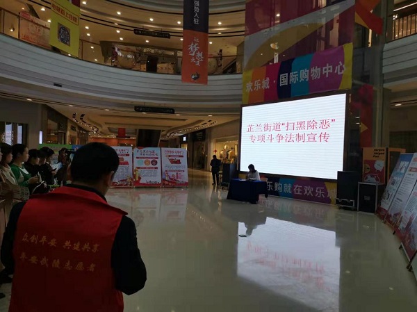 为进一步提升辖区内居民群众对扫黑除恶专项斗争的知晓率和满意度,充分调动和激发群众参与扫黑除恶专项斗争的积极性和主动性,3月19日上午,武陵区芷兰街道、芷兰司法所、芷兰派出所、湖南洞庭律师事务所在和瑞欢乐城内组织开展了“扫黑除恶专项斗争法制宣讲会”,面向社区工作人员、欢乐城全体员工及附近居民群众开展扫黑除恶专项斗争法制宣讲培训活动。