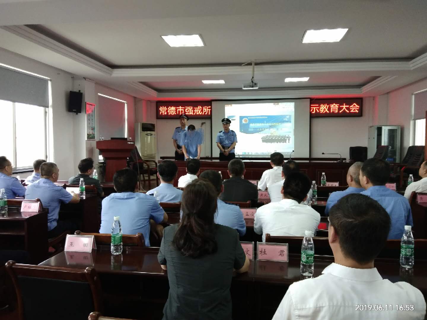 6月11日下午,津市市政法系统50余名领导干部在津市市委常委、政法委书记李景峰、市人民政府副市长、公安局局长戴志刚,市人民法院院长覃业辉,市人民检察院检察长王朝阳带领下专程前往常德市强戒所接受禁毒警示教育。
