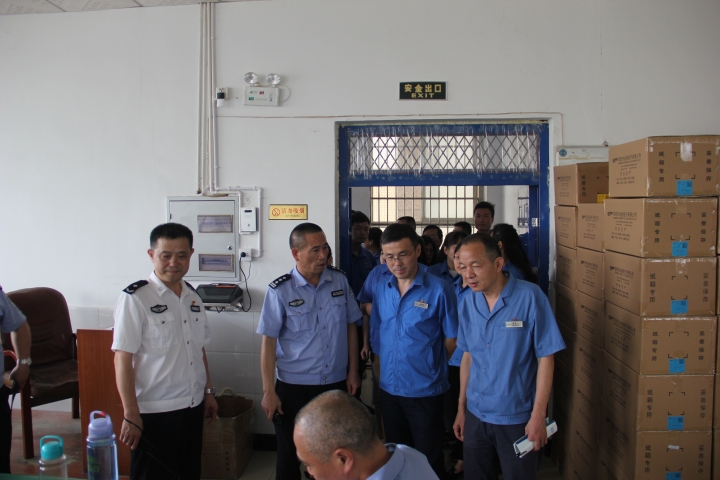 当日,杨朝晖一行在常德市强戒所党委书记、所长江志晖、党委委员、副所长姚勇陪同下列队走进戒毒矫治大院,依次参观了市强戒所禁毒文化墙、戒毒人员宿舍内务、食堂餐厅、习艺车间和禁毒警示教育馆,集中观看了以市强戒所民警收治转化患艾滋病等特殊病残涉毒人员为原型的微电影《警察老曾的一天》,现场感受了市强戒所军营式、校园式、花园式的戒毒矫治氛围和戒毒民警坚守在高墙的工作压力。