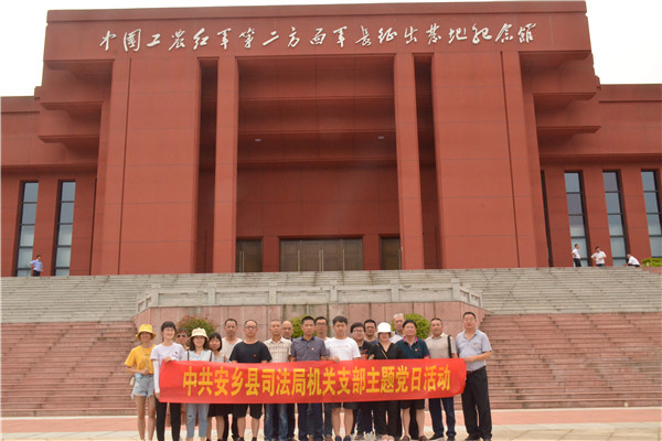 7月6日,安乡县司法局机关支部组织全体党员及入党积极分子专程到张家界桑植县开展主题党日活动。集体参观红二方面军长征出发地、贺龙故居和贺龙纪念馆,重温红色经典,缅怀革命先烈,接受革命传统和爱国主义教育。
