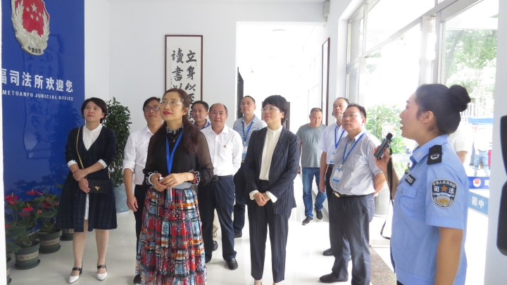 9月19日上午,省司法厅副厅长傅莉娟、副巡视员毛晓军带领全省司法所工作现场会与会人员到临澧县安福司法所参观考察。临澧县委副书记、县长蒋颖群,县委常委、政法委书记毕金生,副县长、县公安局局长戴林忠陪同考察。