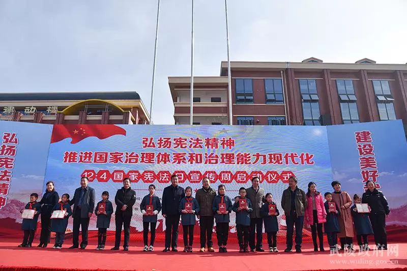 仪式上,王鳌和陈有万分别致辞,强调坚持法治教育从青少年抓起,在青少年学生中组织开展参与度高、具有仪式感的宪法宣传活动。要突出宣传宪法基本原则、主要内容,构建政府、学校、社会、家庭共同参与的青少年法治教育新格局。勉励今日的少年儿童要成为从小学习宪法、宣传宪法、遵守宪法、维护宪法的新时代好少年,为建设美好武陵做出自己应有的贡献。