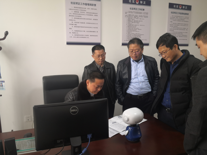侯迁广局长一行实地查看了桃源县社区矫正工作管理局“智慧矫正”建设现场,就社区矫正局的功能分区、指挥监控中心、自助学习室建设等情况进行了详细了解。