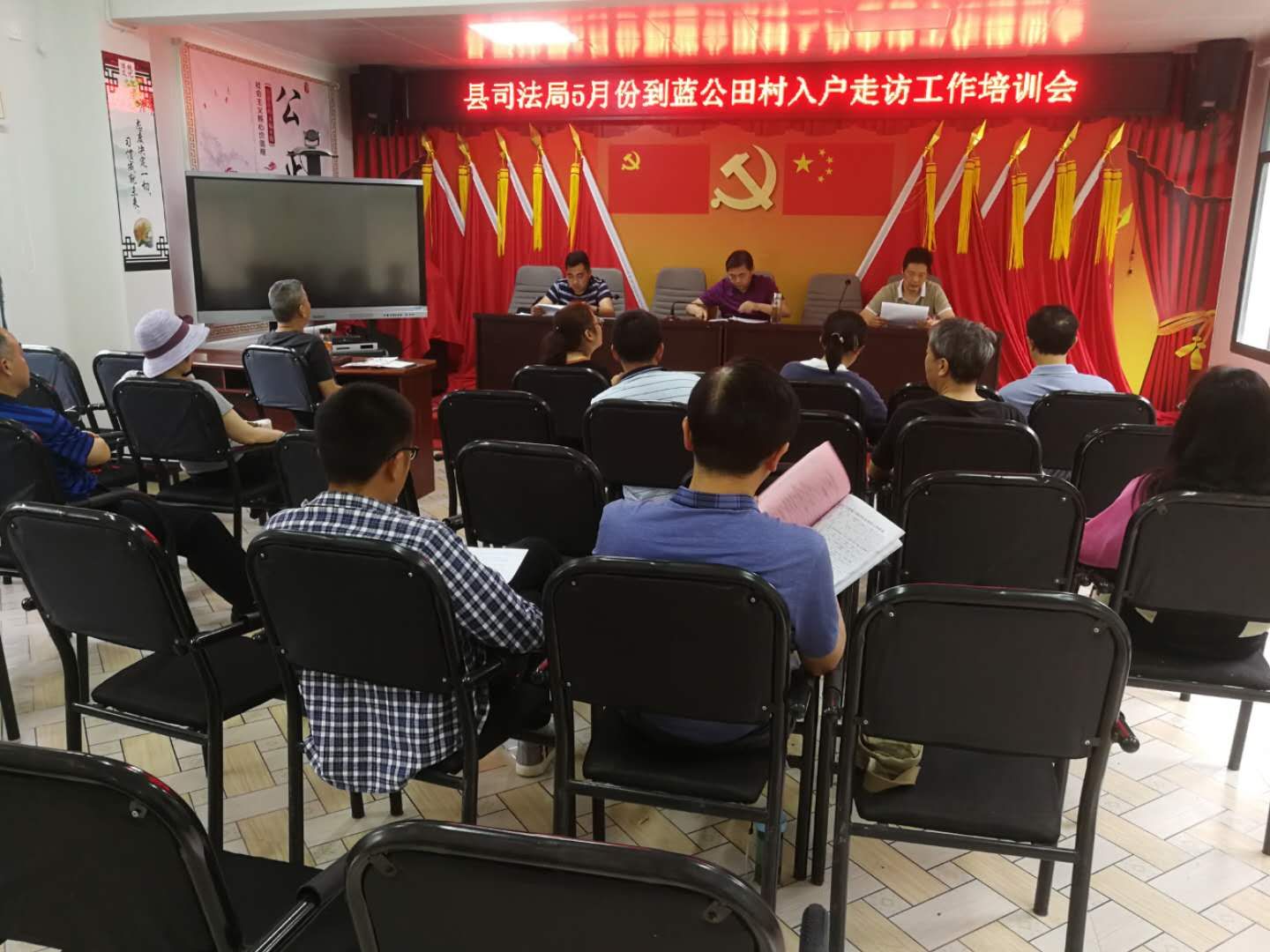 18日下午,石门县司法局5月份入户走访工作培训会在蓝公田村召开,会上,刘波同志传达学习了全县脱贫攻坚工作推进会会议精神,对“回头看”存在的问题进行通报并交办整改,石门县司法局驻蓝公田村工作队队长周金文对走访工作做业务指导。
