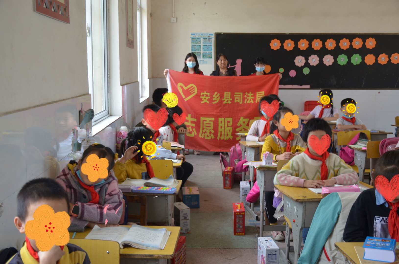 5月26日,安乡县司法局在黄山头镇理兴垱学校开展了“大手牵小手·爱心助成长”关爱未成年人志愿服务活动,为40名困难学生送上食品、牛奶等“六一”节日礼包和祝福。