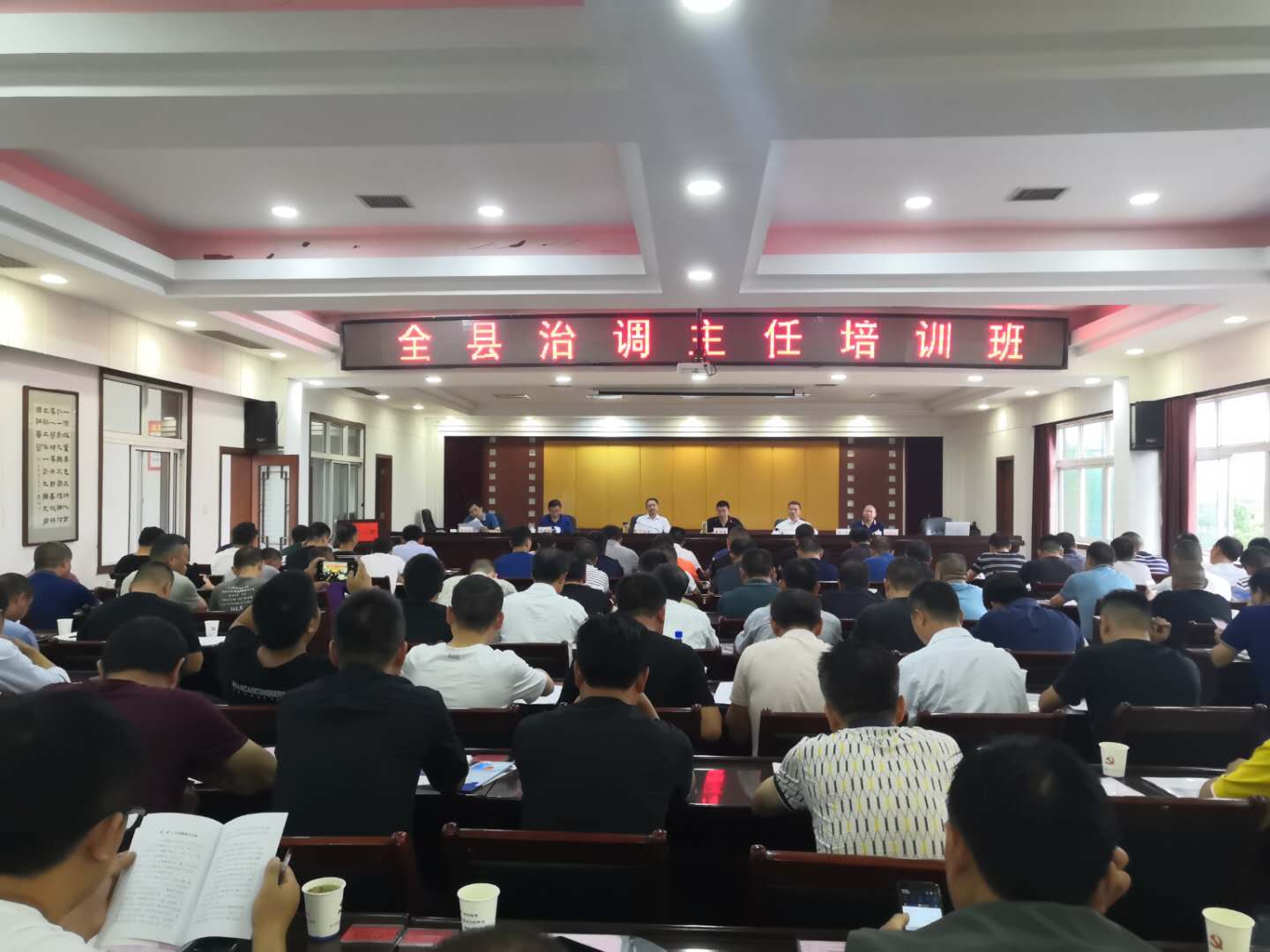 各乡镇(街道)政法书记、综治办主任、司法所长、全县160名村(社区)治调主任、县司法局全体干部参加会议。
