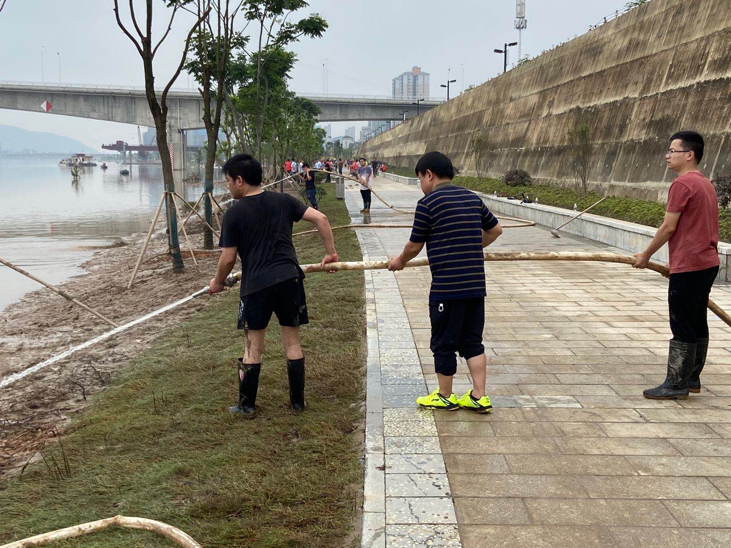 清理过的墙面、花台、游道恢复了原来的样貌,绿地重现盎盎生机,岸绿了,路净了,志愿者们打着赤脚在群众诧异的目光中悄然离去。
