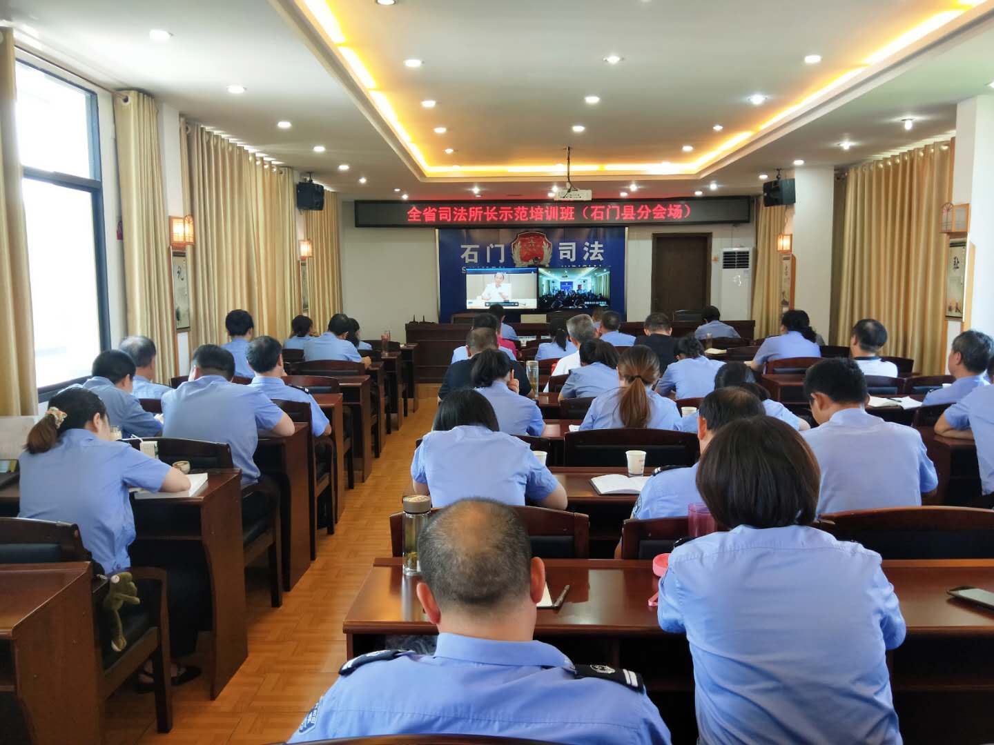 8月24一26日,湖南省司法厅举办为期3天的全省司法所长示范培训班,石门县司法局除推荐一名司法所长到省厅参加现场培训外,有50多名干部职工集中到县局分会场参加远程视频直播学习培训。