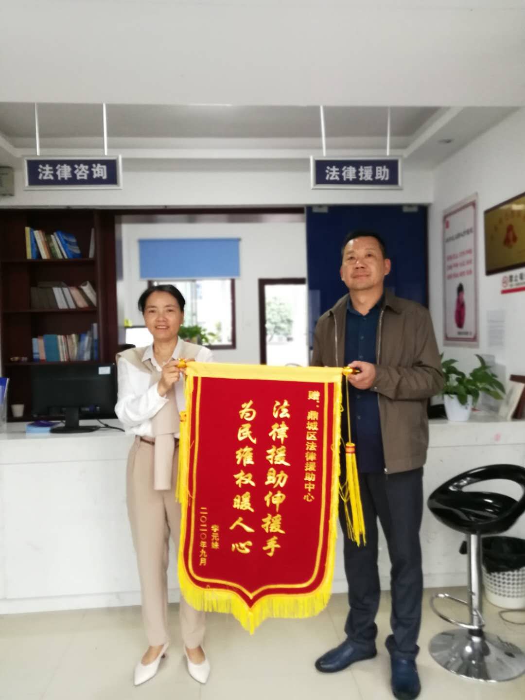 “李主任,真的太感谢你们了,我的案子已经调解结案了。自从女儿离开后我的身心均遭受极大痛苦,我失去了唯一的依靠和希望,感觉没什么活头了。是你们法律援助中心的同志让我感觉到了温暖,周律师为了我的案子也是尽心尽责,我真的感激不尽”。2020年9月21日,在鼎城区司法局法律援助服务大厅,受援人李某妹将一面写有“法律援助伸援手、为民维权暖人心”的锦旗送到鼎城区法律援助中心工作人员的手中,并不停的道谢。