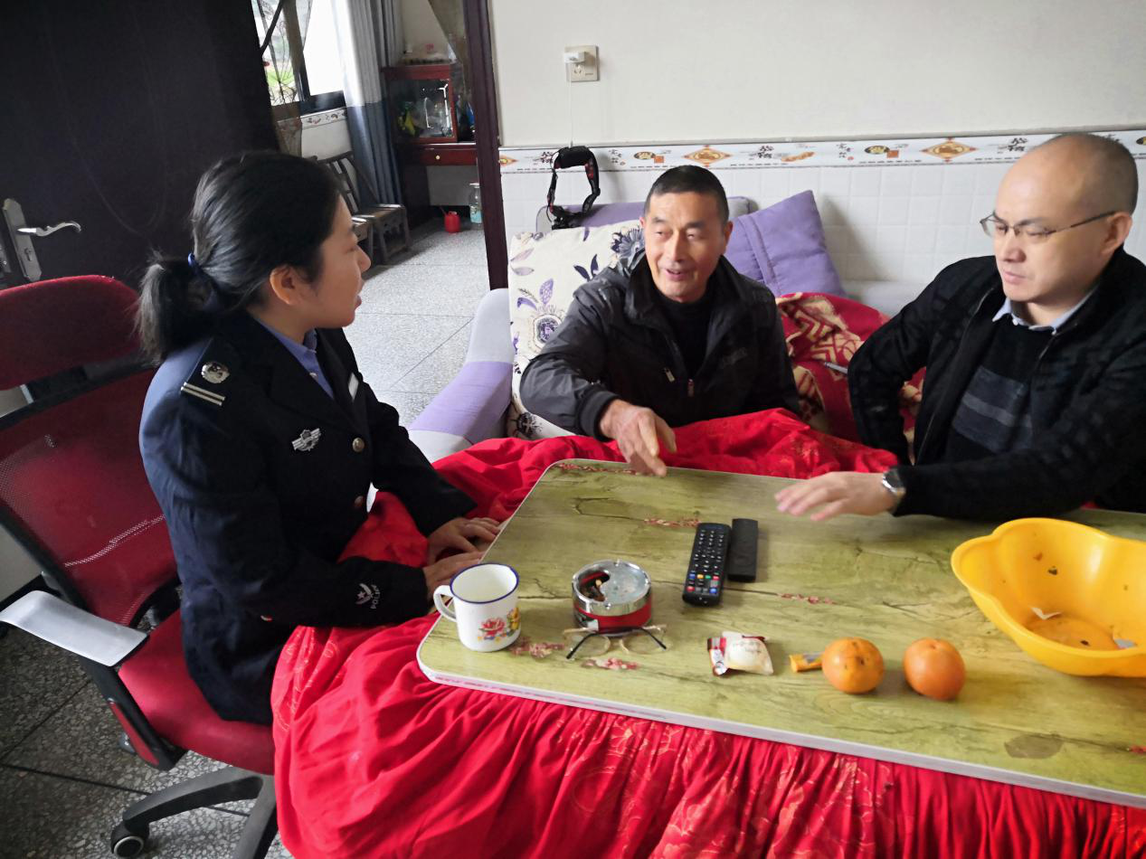 司法局志愿者与谢元恒老人拉家常