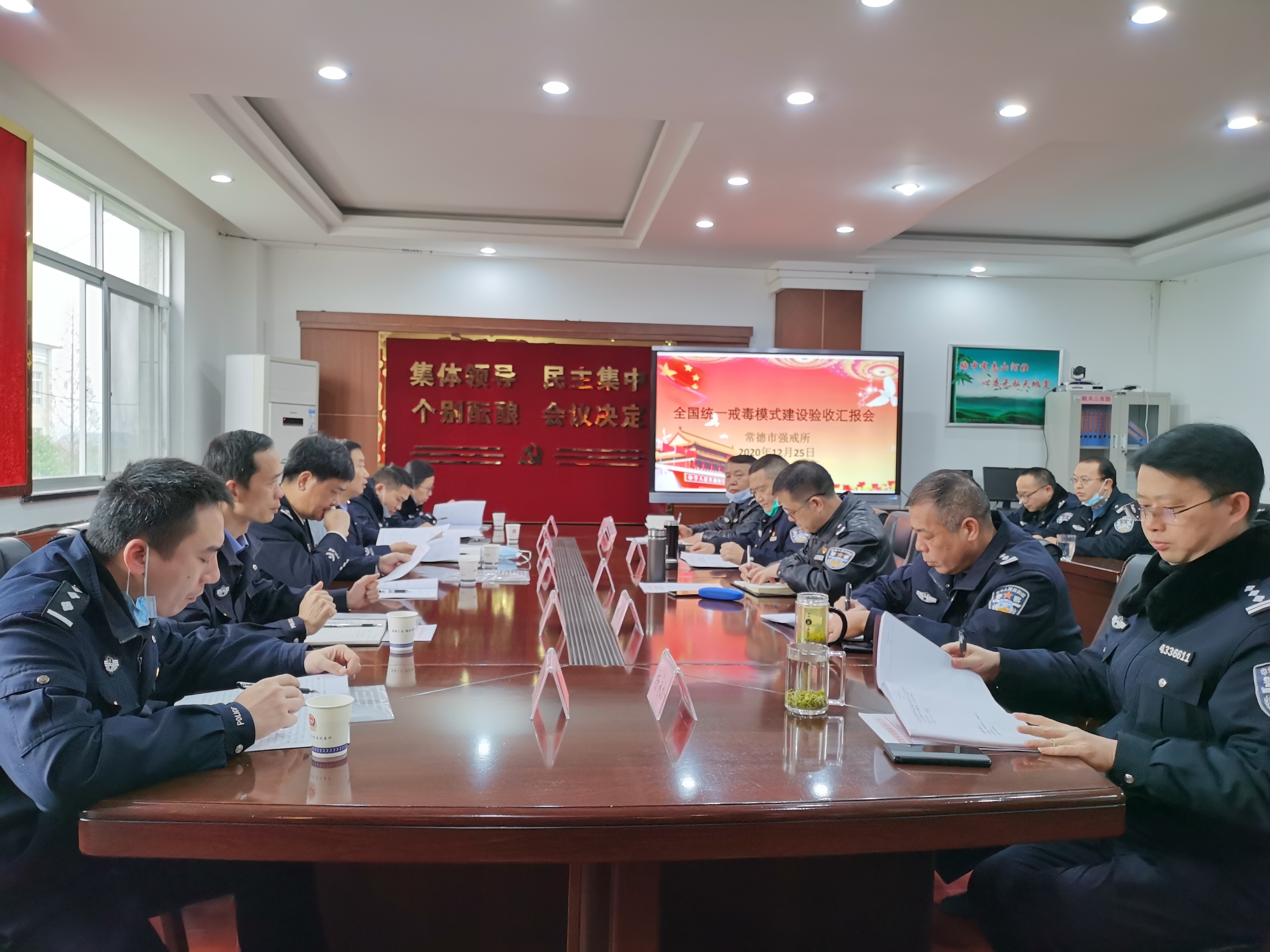 “常德市强戒所统一基本模式示范所创建工作党委重视谋划高位,硬件建设初具规模,业务工作步入规范,后续照管全国领先……。反馈会上,考核组对常德市强戒所率先创建全国统一的司法行政戒毒工作基本模式示范所给予充分肯定,并对下阶段进一步完善示范所创建工作提出了明确要求。政委薛志红表示,将对考核验收组提出的意见建议心悦诚服打收条,对标对表抓整改,不断强化工作成效,继续巩固工作成果,努力打造大所强所示范所。