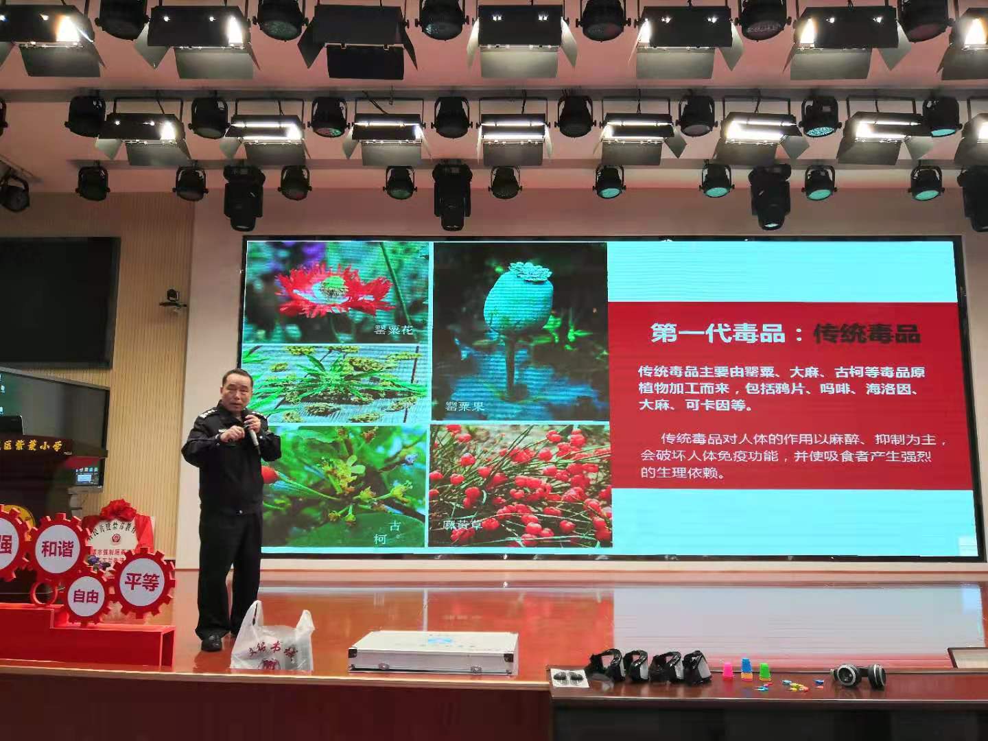 一是与武陵区芷兰街道、武陵区芷兰街道沙河社区戒毒康复工作站联合在武陵区紫菱小学警民共建禁毒教育基地。3月29日,常德市强戒所政委薛志红、副所长姚勇率领民警一行前往武陵区紫菱小学为禁毒教育基地授牌,市强戒所民警易泽龙受聘担任学校禁毒法制副校长,为学校师生举办了一场青少年毒品预防教育讲座,给该校千余名师生送上了一份特殊的禁毒大礼包。