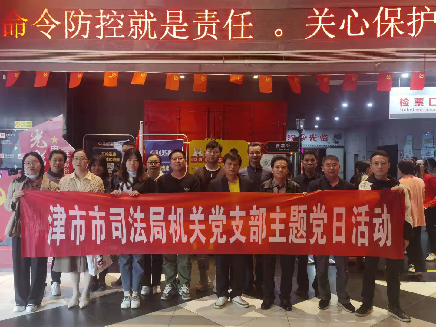 为深入开展党史学习教育,增强党员干部职责使命感,引导全体干警奋发有为;同时,在重阳节来临之际,进一步营造敬老、亲老、爱老、助老的社会风尚,让老同志切身感受到组织的温暖和关爱,更好促进老干部充分发挥余热,津市市司法局开展爱国主义观影主题党日活动暨“我们的节日·重阳”主题活动,组织全体在职干部职工及退休干部观看爱国主义题材电影《长津湖》。