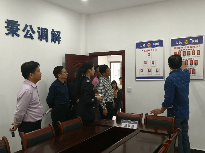 4月24日下午,湖南省司法厅基层处处长魏威、市司法局局长王鳌一行人调研了临澧县安福司法所标准化建设工作。