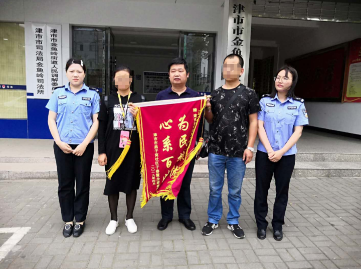 4月26日上午,在津市市金鱼岭司法所耐心调解一起环卫工人工亡赔偿纠纷后,死者亲属来到司法所,将一面印有“心系百姓 为民解忧”的锦旗送给司法所,表达他们对司法所人民调解员倾心尽力为百姓办实事、解难题的感激之情。