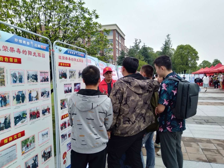 5月14日至15日,“常德市2019年社会科学普及主题活动月启动式暨社科知识宣传展”在常德职业技术学院连轴上演。来自常德市强戒所、武陵区聚宝戒毒康复服务中心、武陵区沙河社区戒毒康复工作站和武陵区致善社会工作服务中心的30余名禁毒志愿者身穿志愿者马甲忙碌的穿梭在校园社科普及展览区,志愿者们或宣讲禁毒知识、或展示仿真毒品、或分发宣传资料,为社科普及活动增添了一道靓丽的风景。