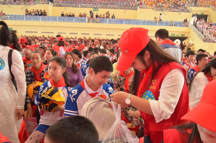 孩子的童年应该是天真、无邪、快乐的,但对于这些先天有缺陷的儿童来说这样的快乐是少有的。一个书包、一双新鞋、一个帽子。。。当志愿者带着为孩子们精心挑选的礼物来到他们身边时,开心、激动的心情在孩子们脸上浮现。志愿者现场观看了孩子们特意准备的节目表演,灯光下,那一张张天真烂漫的笑脸,以及用手语表达出的感谢之情让志愿者为之动容,感慨万千。“来,小朋友,你试试,看裙子的尺寸合适吗,喜欢这条裙子吗?”“小朋友,我给你把帽子戴上可以吗,试试好不好看”,志愿者们与孩子们亲切的进行交流并将特别的礼物送给孩子们,他们有的羞涩、有的懵懂、有的比心,场面温馨而感人。