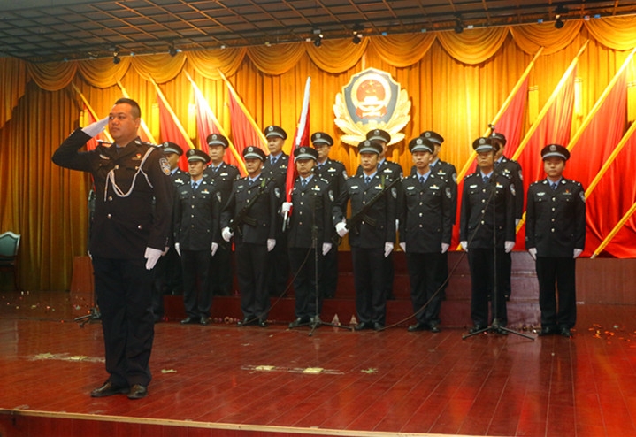 表彰开始前,全体警察起立合唱《国际歌》,9名新发展的中共预备党员在党旗下进行了庄严的宣誓仪式,全体党员重温入党誓词。