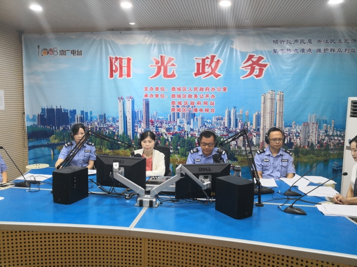 8月23日,鼎城区司法局由副局长铁红旗带领相关股室负责人参加了由鼎城区人民政府办主办,区行政审批服务局、区人民政府网、区广播电台承办的《阳光政务》访谈节目,就全区司法行政工作的热点问题与广大听众和网友互动交流,认真解答咨询。