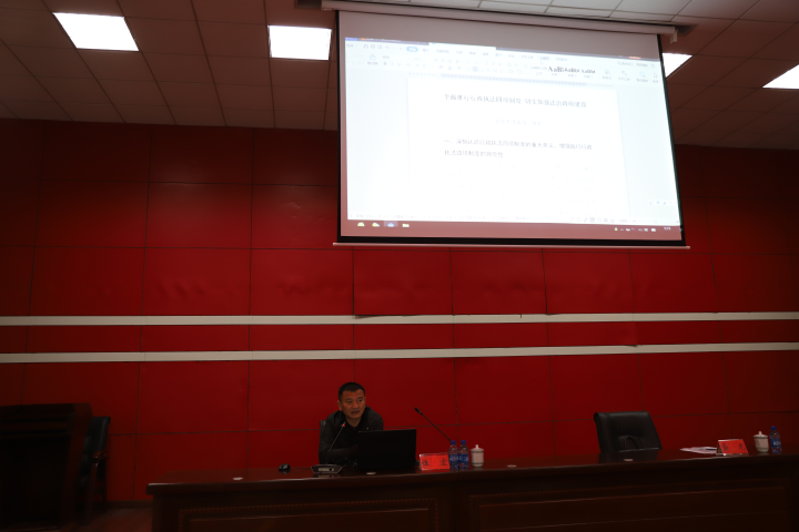 会议第二阶段由常德市司法局党组成员、副局长伍宏开班授课。伍宏同志以全面推进“四项制度“为主题,围绕落实执法公示责任,强化事前公开、规范事中公示、加强事后公开;落实执法全过程记录责任,完善文字记录、规范音像记录、严格记录归档、发挥记录作用;严格落实法制审核制度,明确审核机构、确定审核范围、明确审核责任;说明理由制度的使用范围、说明理由的标准及内容、说明理由制度执行的监督;推行行政执法信息化建设,实现行政执法全称留痕,法制审核流程规范有序;以上五个方面做了深入浅出、通俗易懂的讲解。
