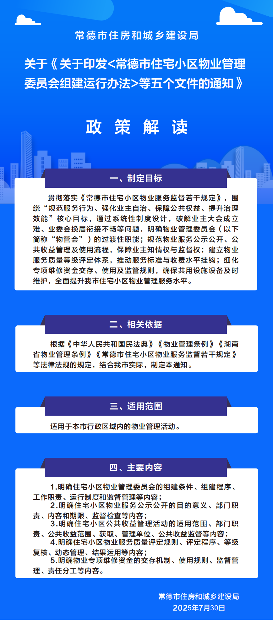 图文解读:常德市住房和城乡建设局关于《关于印发<常德市住宅小区物业管理委员会组建运行办法>等五个文件的通知》