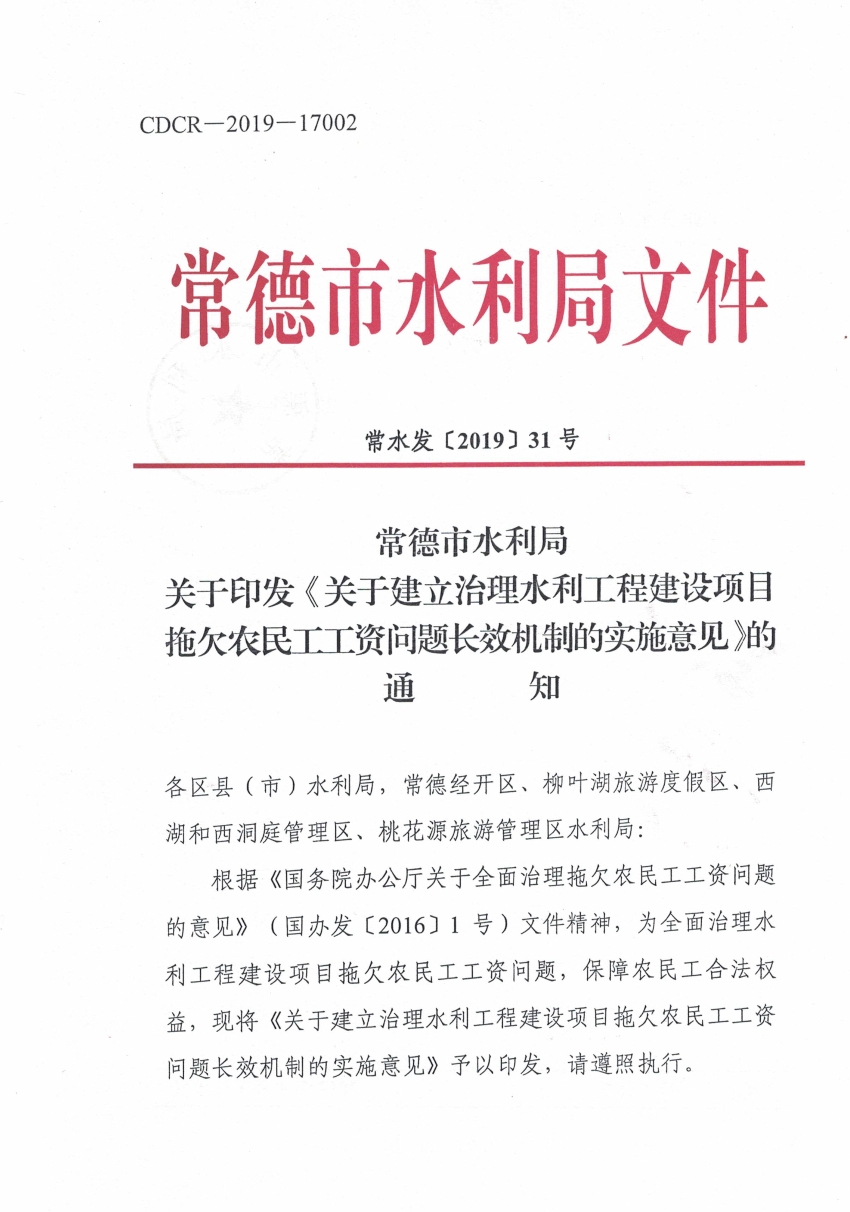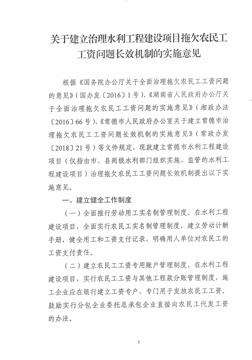 常德市水利局关于印发《关于建立治理水利工程建设项目拖欠农民工工资问题长效机制的实施意见》的通知
