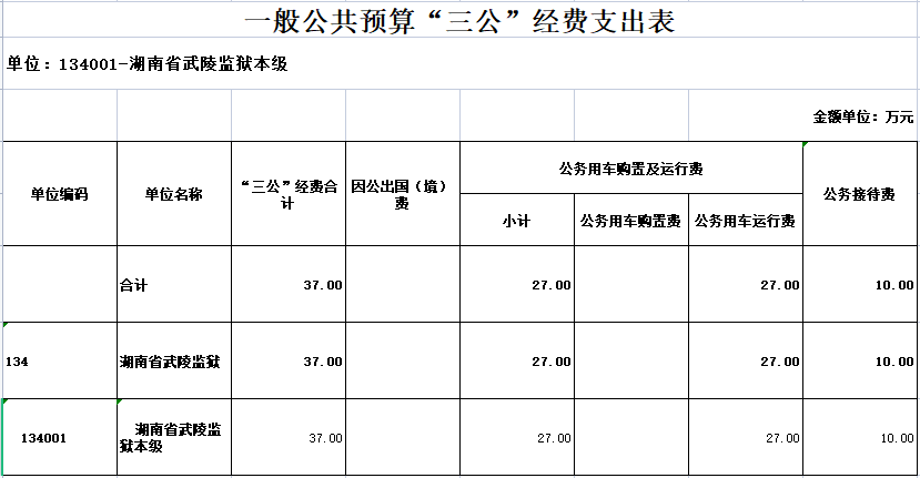 湖南省武陵监狱2023年“三公”经费预算公开表