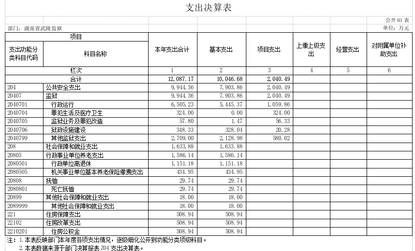 3、公共安全支出(类)监狱(款)监狱业务及罪犯改造(项)。