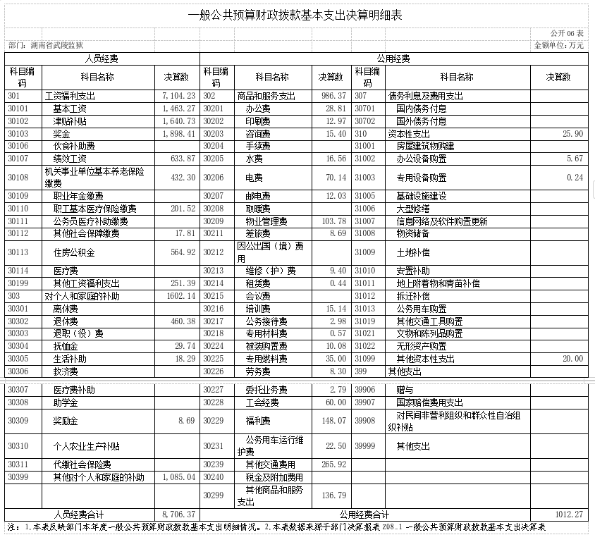 1、公共安全支出(类)监狱(款)行政运行(项)。