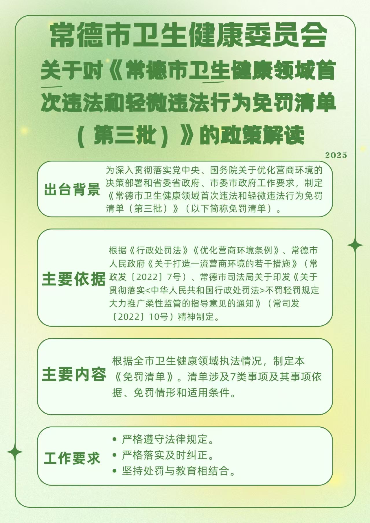 图文解读:常德市卫生健康委员会关于印发《常德市卫生健康领域首次违法和轻微违法行为免罚清单(第三批)的通知》