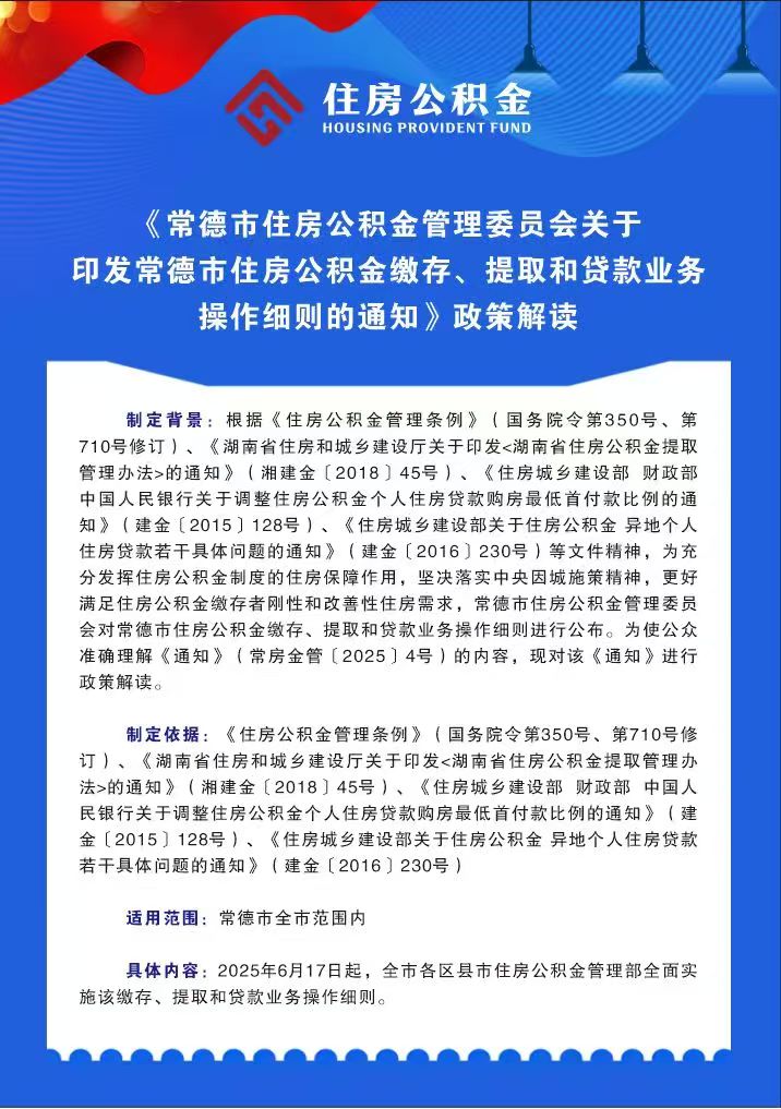《常德市住房公积金管理委员会关于印发常德市住房公积金缴存、提取和贷款业务操作细则的通知》图文解读