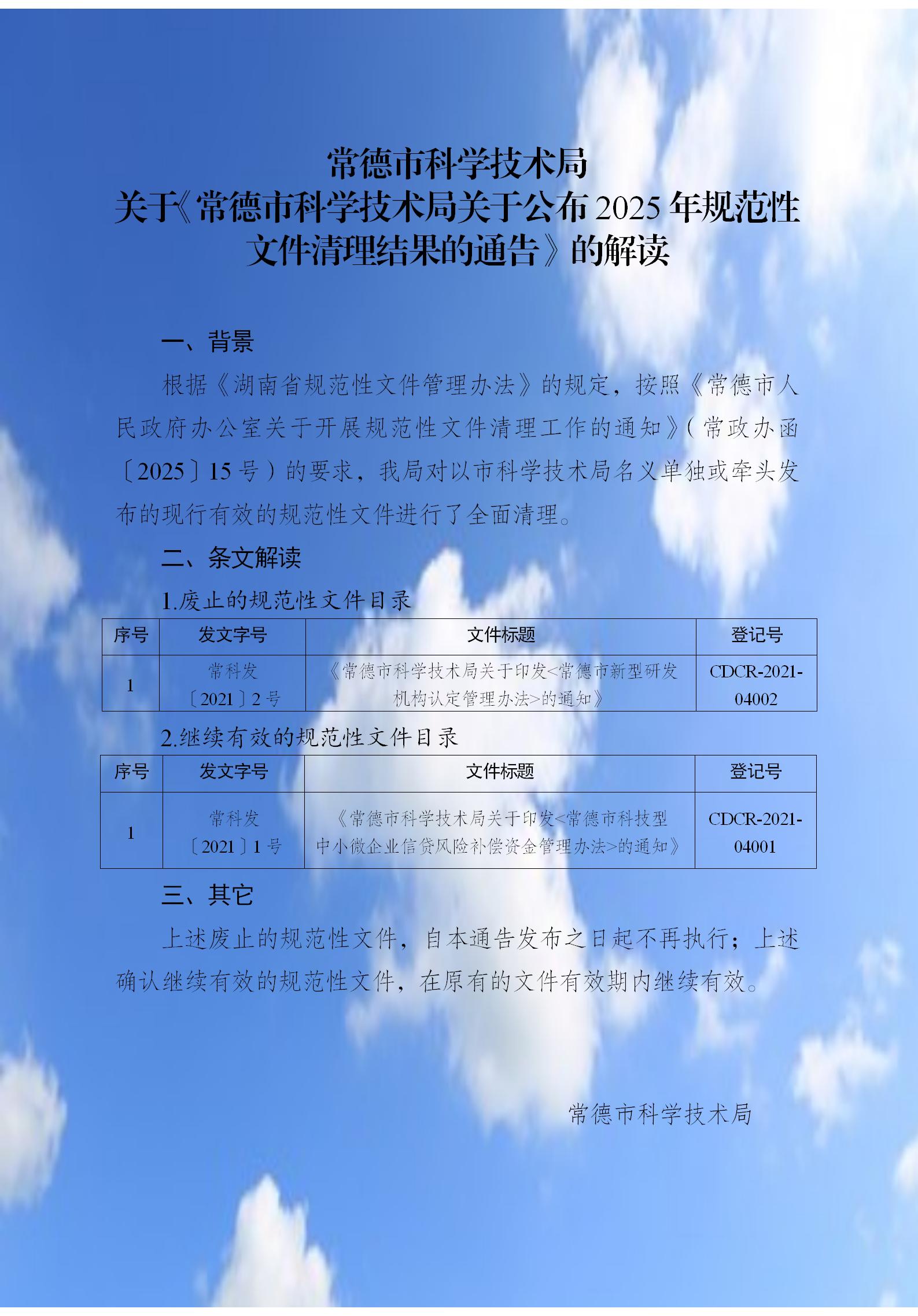图文解读:常德市科学技术局关于《常德市科学技术局关于公布2025年规范性文件清理结果的通告》