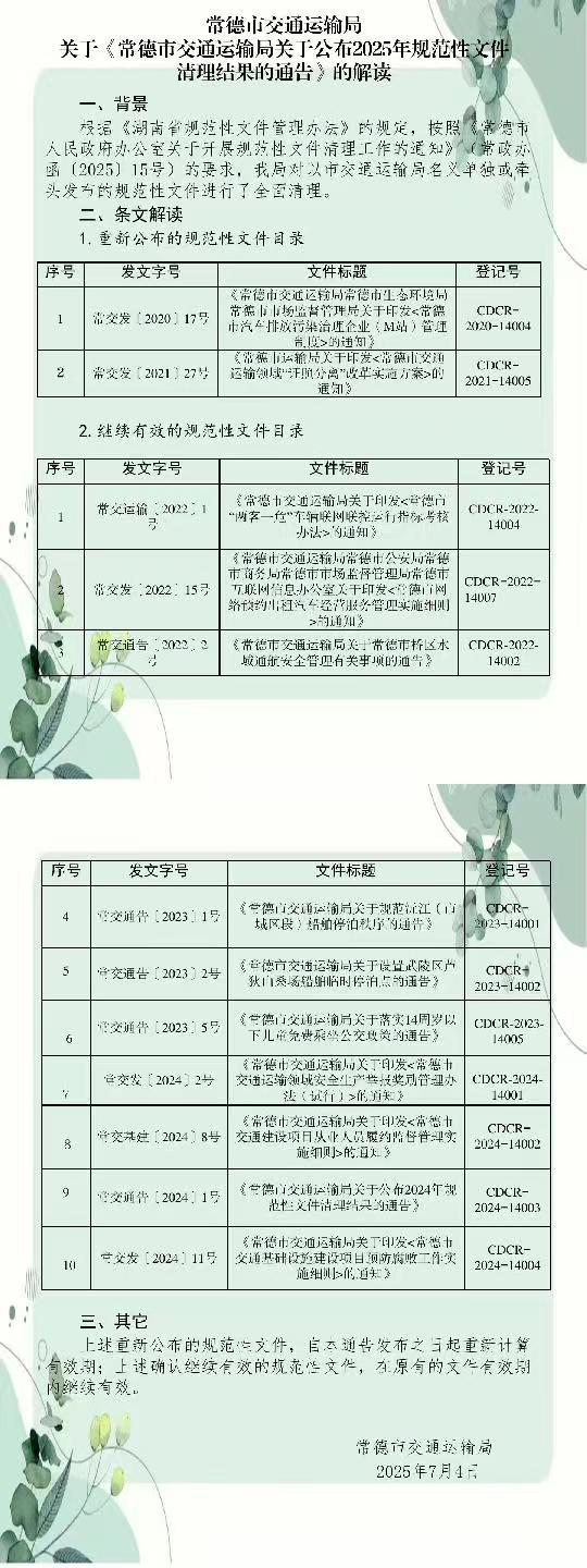 图文解读:常德市交通运输局关于《常德市交通运输局关于公布2025年规范性文件清理结果的通告》