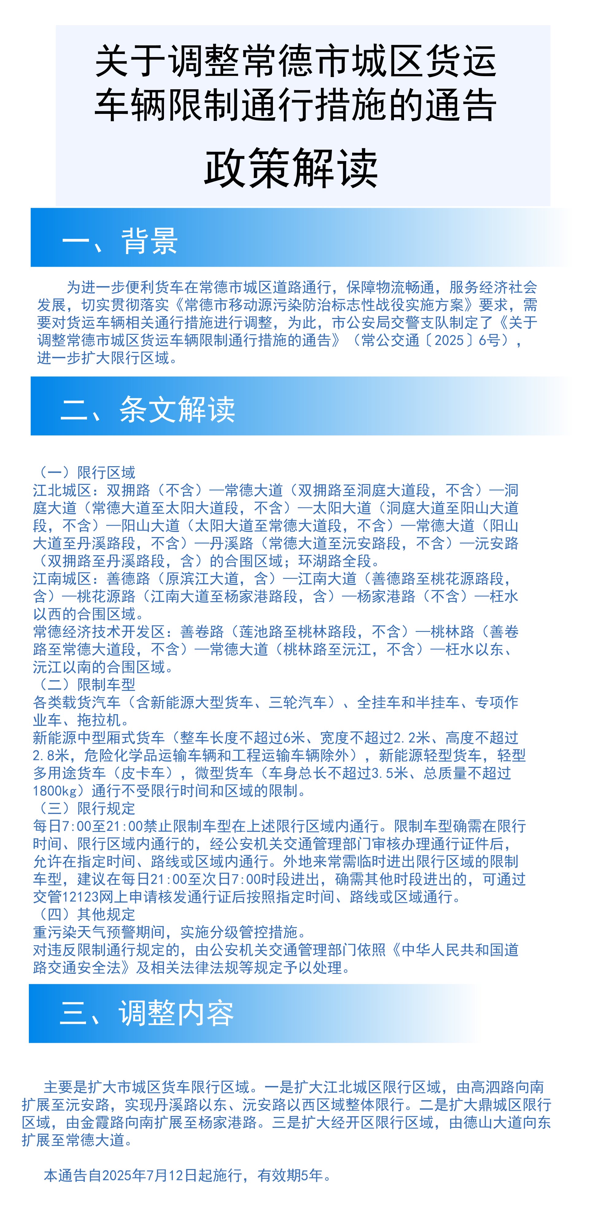 图文解读:常德市公安局交通警察支队《关于调整常德市城区货运车辆限制通行措施的通告》