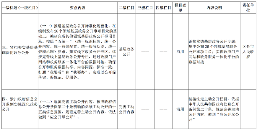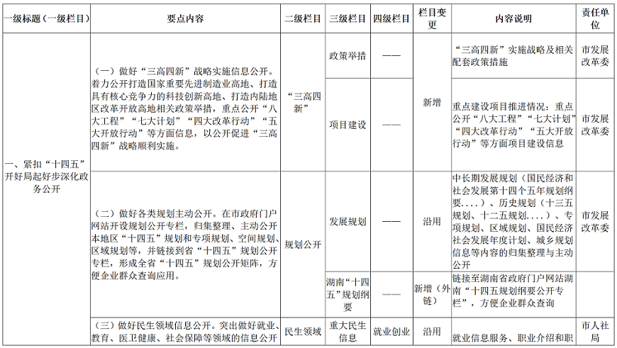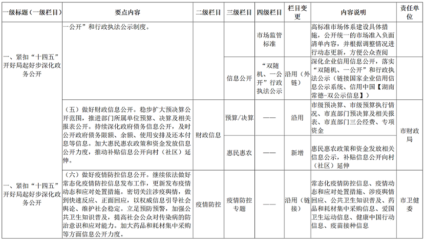 常德市落实《湖南省2021年政务公开工作要点》责任分解表