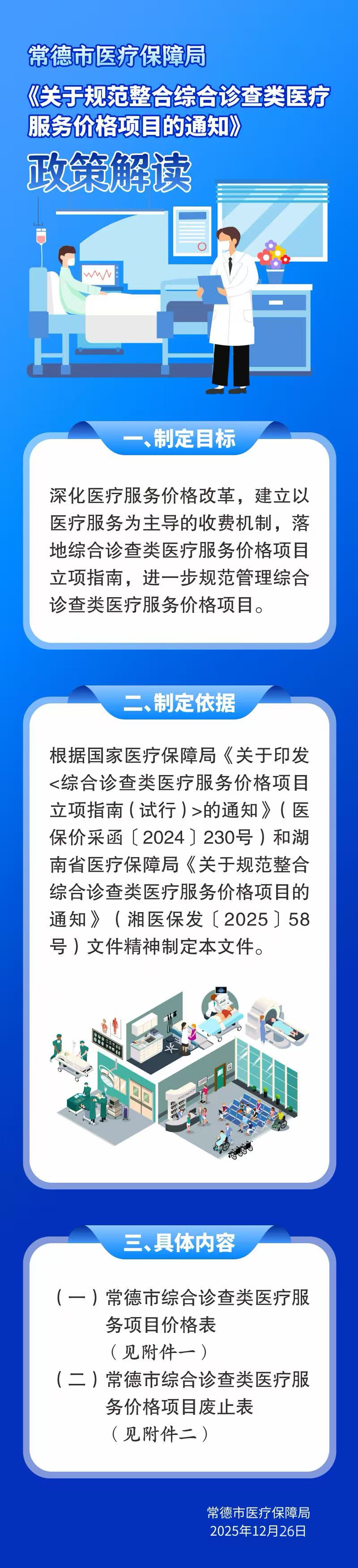 来源:常德市医疗保障局《关于规范整合综合诊查类医疗服务价格项目的通知》政策解读
