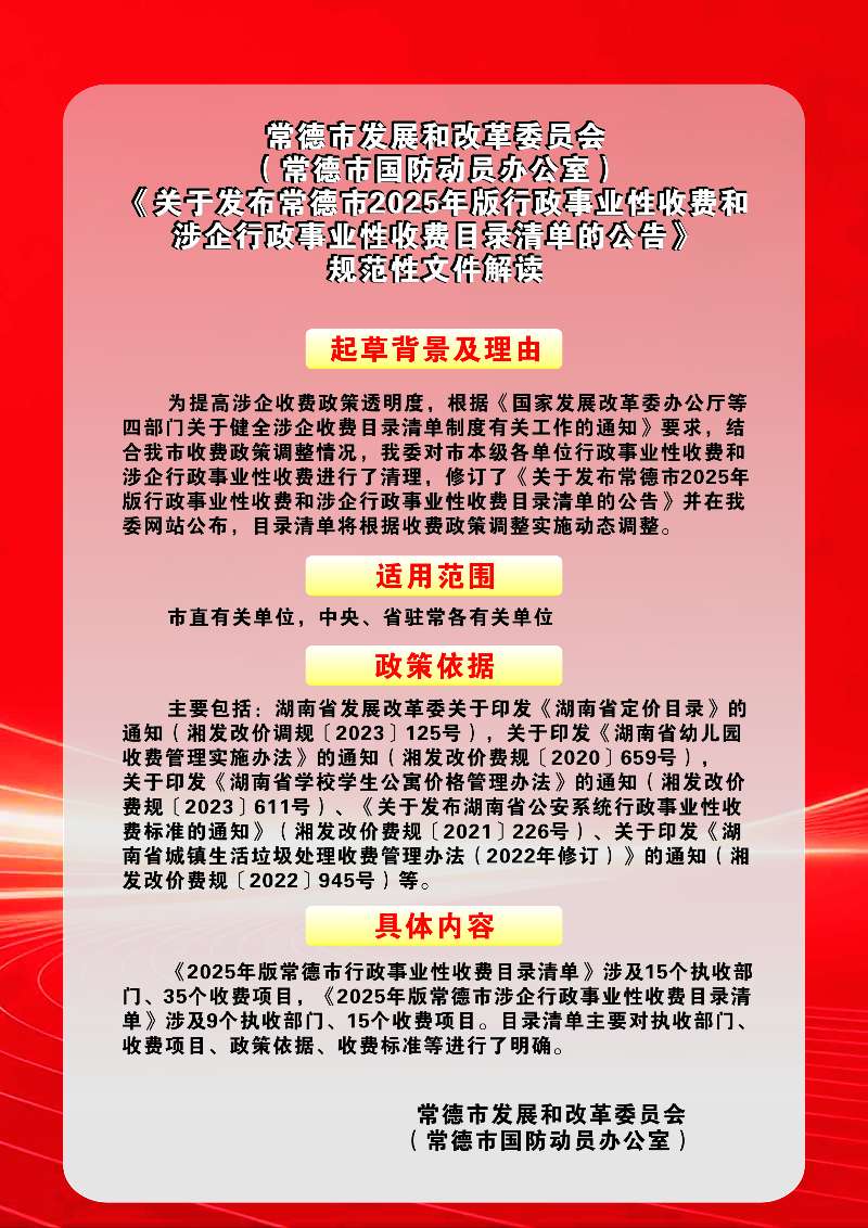 图文解读:常德市发展和改革委员会(常德市国防动员办公室)《关于发布常德市2025年版行政事业性收费和涉企行政事业性收费目录清单的公告》