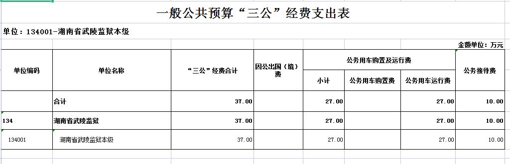 湖南省武陵监狱2022年“三公”经费预算公开表
